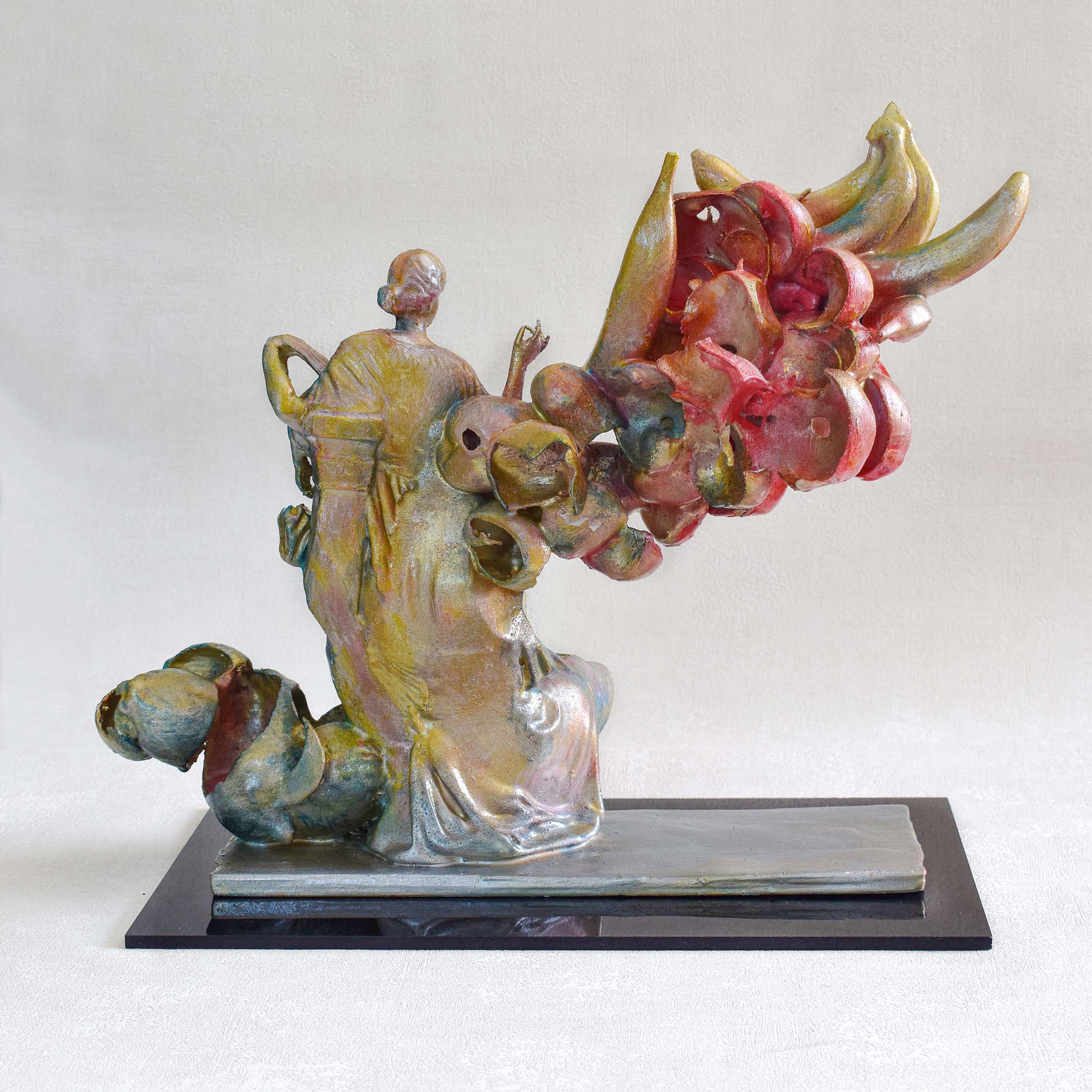 A three-dimensional exploration inspired by the artist’s original digital collage, transforming virtual imagery into tangible form.