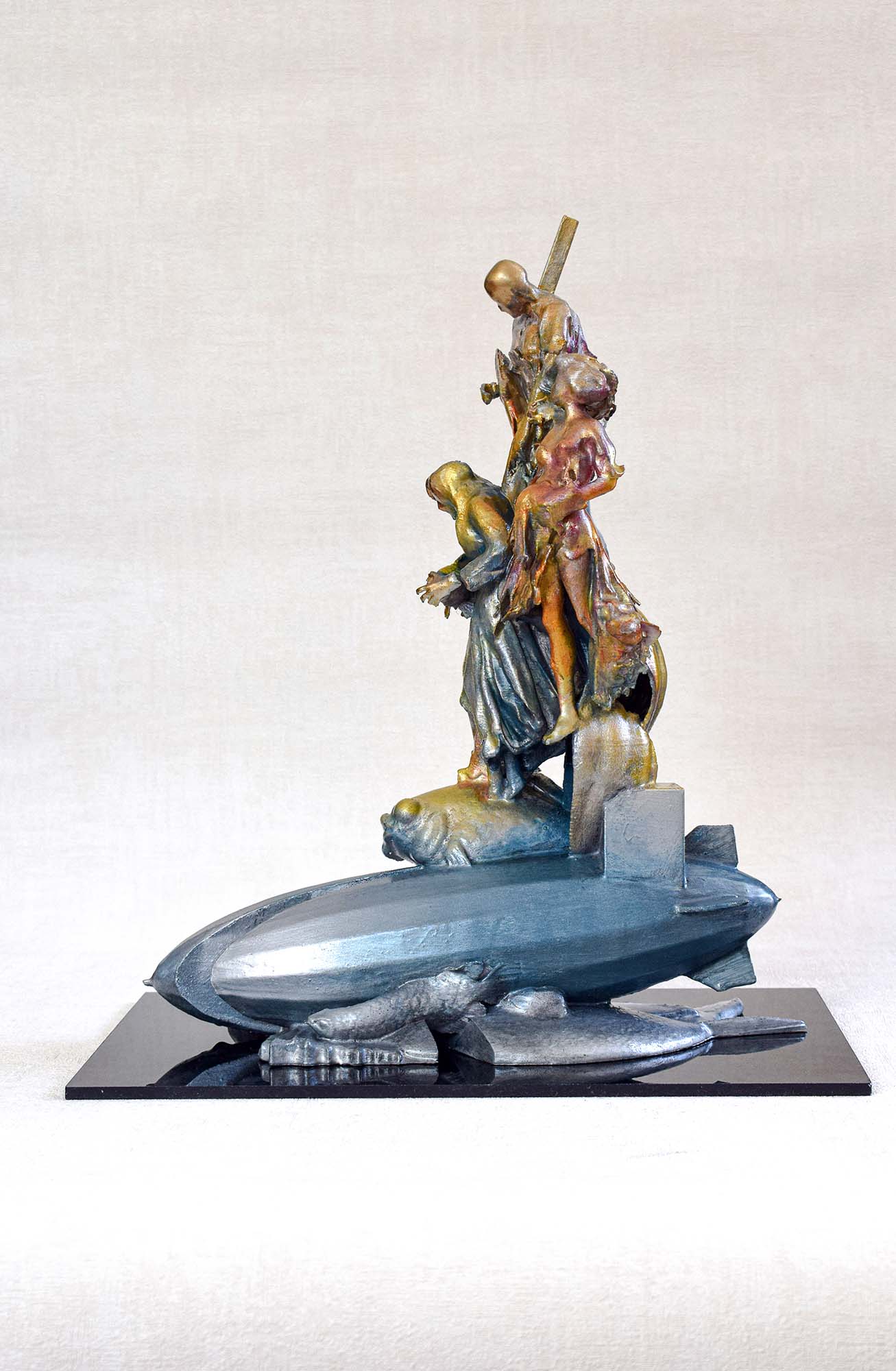 A three-dimensional exploration inspired by the artist’s original digital collage, transforming virtual imagery into tangible form.